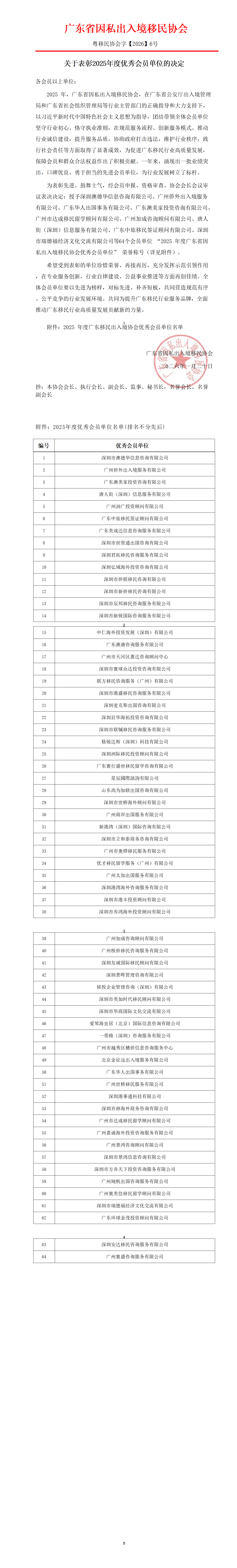 关于表彰2025年度广东移民行业杰出员工的决定