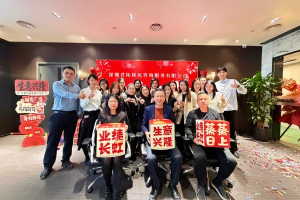 2026年2月4日,深圳君拓移民咨询服务有限公司隆重举行乔迁仪式,在礼炮齐鸣、财门大开的喜庆氛围中,正式入驻全新办公场所,开启企业发展新篇章。公司管理层与全体员工齐聚一堂,共同见证这一重要时刻。